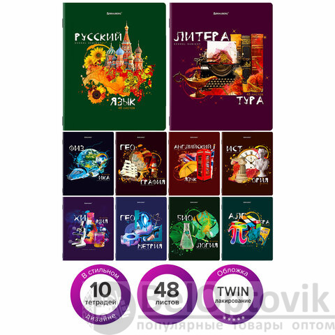 Тетради предметные со справочным материалом, КОМПЛЕКТ 10 ПРЕДМЕТОВ, 48 л., TWIN лак, BRAUBERG, "ORIGINAL", 404328