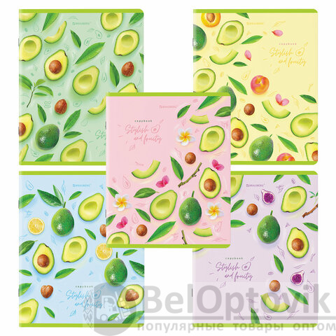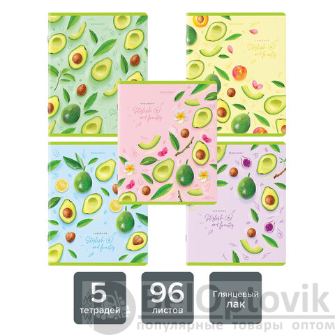 Тетради ДЭК А5 96 л. КОМПЛЕКТ 5 шт., BRAUBERG скоба, клетка, глянцевый лак, "Авокадо", 404401