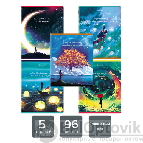 Тетради КОМПЛЕКТ 5 шт., А5, 96 л., BRAUBERG скоба, клетка, глянцевый лак, "Dream World", 404402