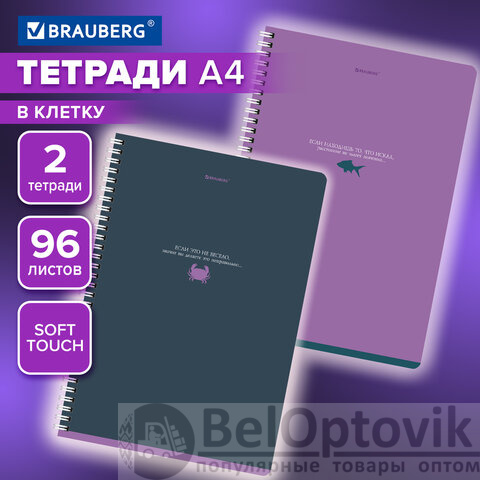 Тетради ДЭК А4 96 л. КОМПЛЕКТ 2 шт. BRAUBERG гребень, клетка, Soft Touch, MONOCOLOR, 404647