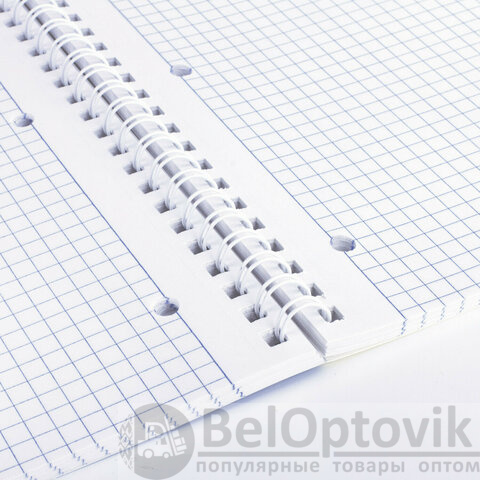 Внутренний блок содержит 96 листов офсетной бумаги плотностью 60 г/м2. Обложка изготовлена из мелованного картона с эффектом Sort Touch. Линовка – клетка. Гребень надежно скрепляет листы между собой. Белизна – 100%. Формат – А4.