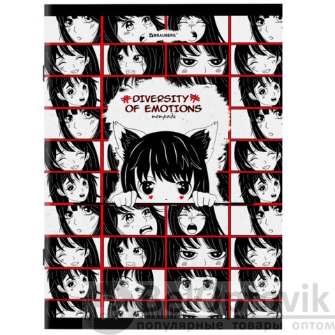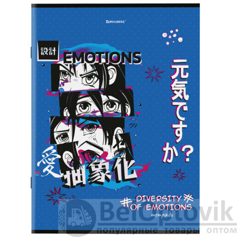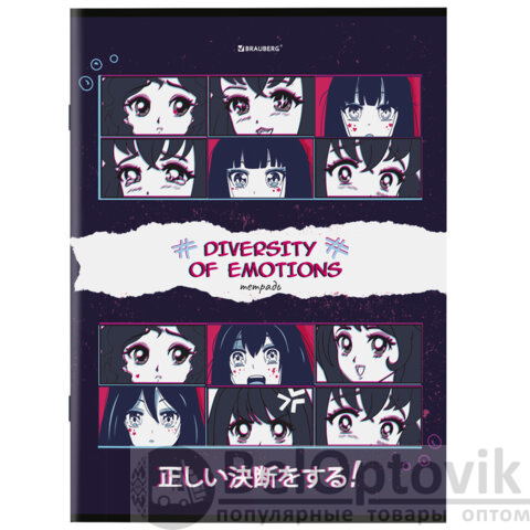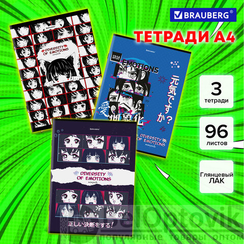 Тетради ДЭК А4, 96 л., КОМПЛЕКТ 3 шт., BRAUBERG, скоба, клетка, глянцевый лак, "Anime Emotions", 404653