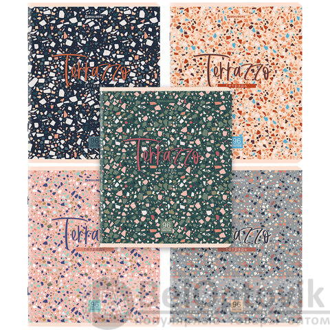 Тетради ДЭК А5 96 л. КОМПЛЕКТ 5 шт., BRAUBERG скоба, клетка, матовая ламинация, "Terrazzo", 404690