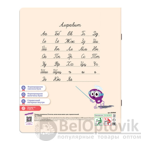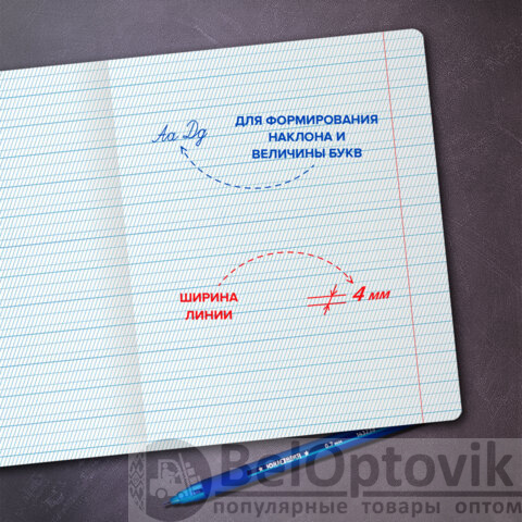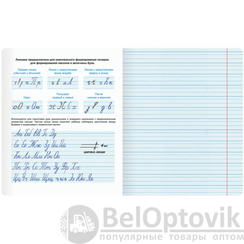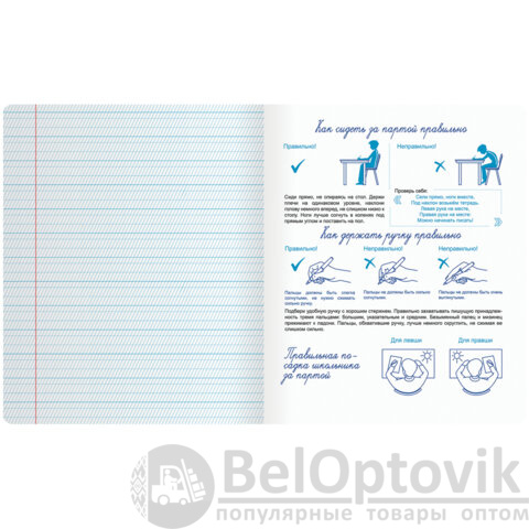 Внутренний блок из офсетной бумаги плотностью 60 г/м2 содержит 12 листов. Белизна - 100%. Линовка - частая косая линия с дополнительной горизонтальной, с полями. Высота строки - 4 мм. Обложка изготовлена из мелованного картона. Скрепка надежно скрепляет листы между собой. Тетради поставляются комплектом в количестве 10 штук.