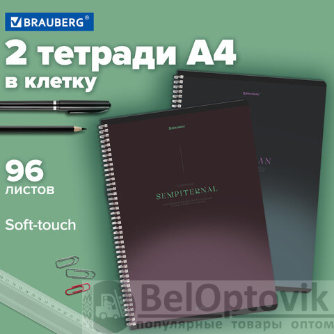 Тетради ДЭК А4 96 л. КОМПЛЕКТ 2 шт. BRAUBERG гребень, клетка, SoftTouch, "Peaceful", 404875