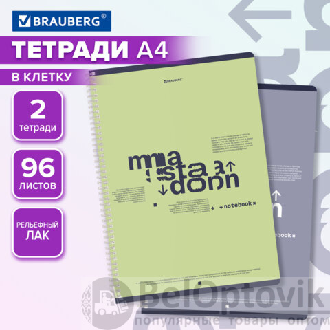 Тетради ДЭК А4 96 л. КОМПЛЕКТ 2 шт. BRAUBERG гребень, клетка, TWIN-лак, "Моноколор_2", 404876