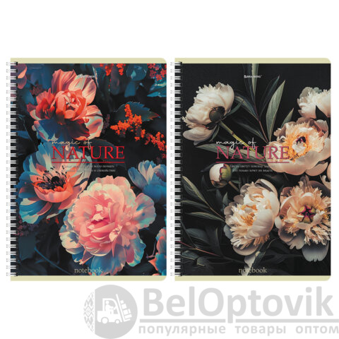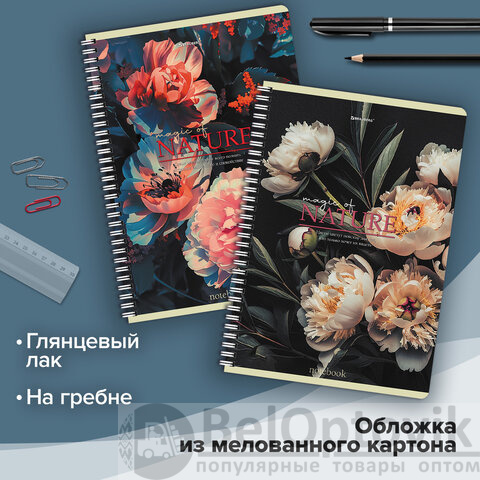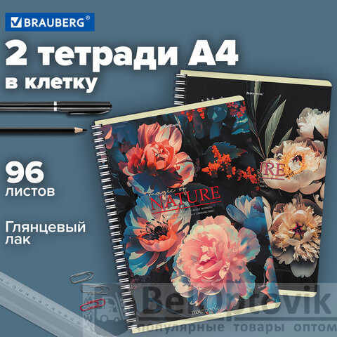 Тетради ДЭК А4 96 л. КОМПЛЕКТ 2 шт. BRAUBERG гребень, клетка, глянцевый лак, ЦВЕТЫ, 404881