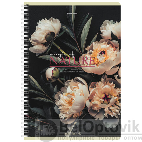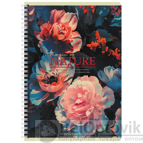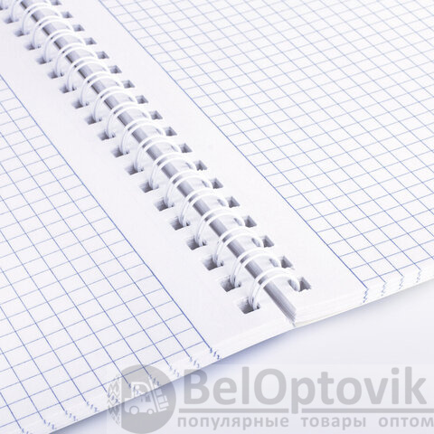 Внутренний блок содержит 96 листов офсетной бумаги плотностью 60 г/м2. Обложка изготовлена из мелованного картона с глянцевым лаком. Линовка – клетка. Гребень надежно скрепляет листы между собой. Белизна – 100%. Формат – А4.