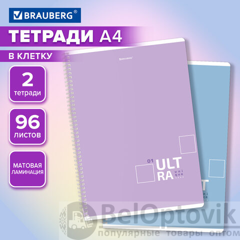 Тетради ДЭК А4 96 л. КОМПЛЕКТ 2 шт. BRAUBERG гребень, клетка, матовая ламинация, "UltraTone", 404883