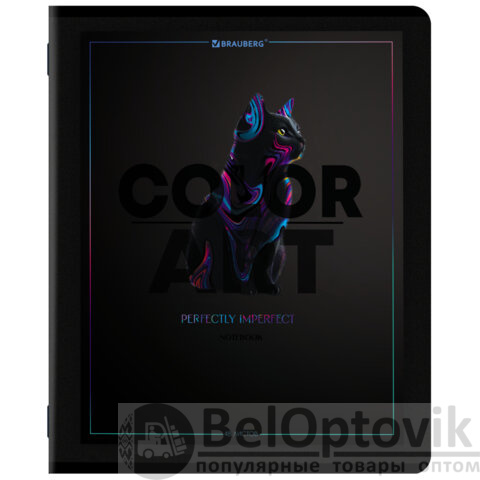 Внутренний блок содержит 48 листов офсетной бумаги плотностью 60 г/м2. Обложка изготовлена из мелованного картона с матовой ламинацией и выборочным лаком. Линовка – клетка с полями. Скрепка надежно соединяет листы между собой. Белизна – 100%. Формат – А5.
