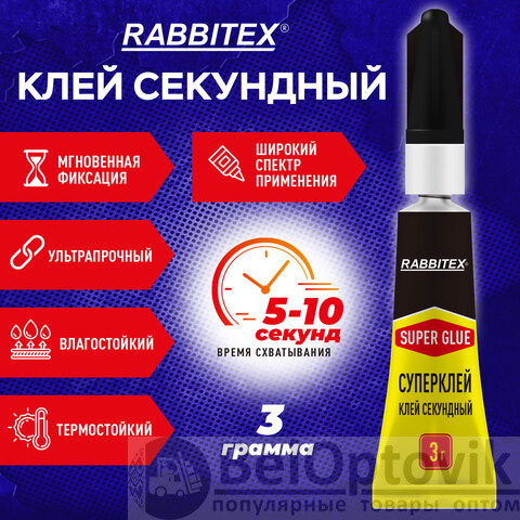 Клей секундный RABBITEX - это мгновенная прочность, качество и долговечность. Идеально подходит для ремонта пластика, керамики, дерева, металла, кожи и других материалов. Не применяется для посуды, контактирующей с пищей!
