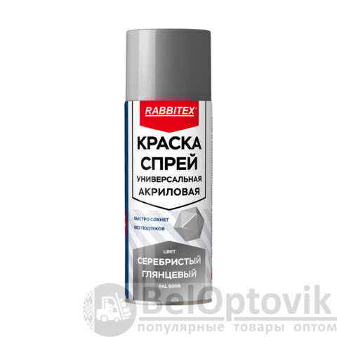 Краска-спрей акриловая универсальная серебряная глянцевая RAL 9006, 520 мл, нетто-вес 265 грамм, RABBITEX (РАББИТЕКС), 700302