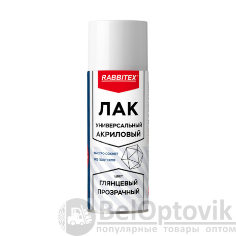 Глянцевый аэрозольный лак RABBITEX обеспечит идеальную защиту и сияющий финиш любых поверхностей. Лак-спрей – это удобный и эффективный способ покрытия без лишних усилий.