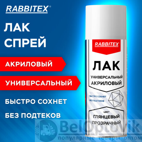 Лак-спрей акриловый универсальный глянцевый 520 мл, нетто-вес 265 грамм, RABBITEX (РАББИТЕКС), 700304