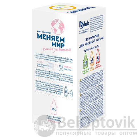 Ресурс кассеты составляет до 200 литров (примерно 45 дней для средней семьи), что делает её практичным выбором для ежедневного использования. Все кассеты БАРЬЕР универсальны: «Классик» подходит ко всем фильтрам-кувшинам бренда, независимо от модели.