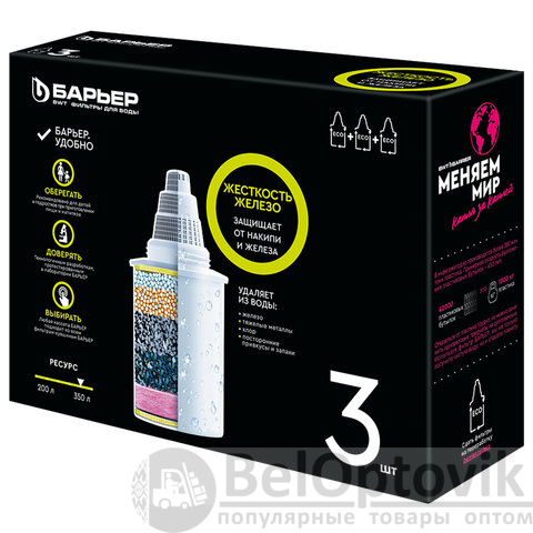 Сменная кассета БАРЬЕР "Жесткость Железо" для жесткой и железистой воды, КОМПЛЕКТ 3 шт., ресурс 3х350 л, К303Р00