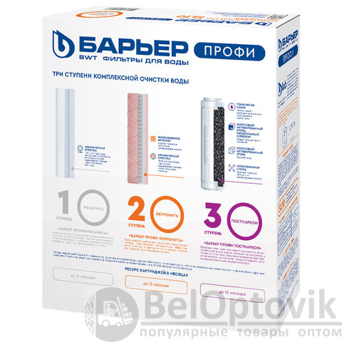Комплект сменных картриджей «БАРЬЕР ПРОФИ Железо» — это профессиональное решение для домов и дач, где водопроводная вода содержит повышенное количество железа, вызывая мутность, рыжий налёт и неприятный привкус.