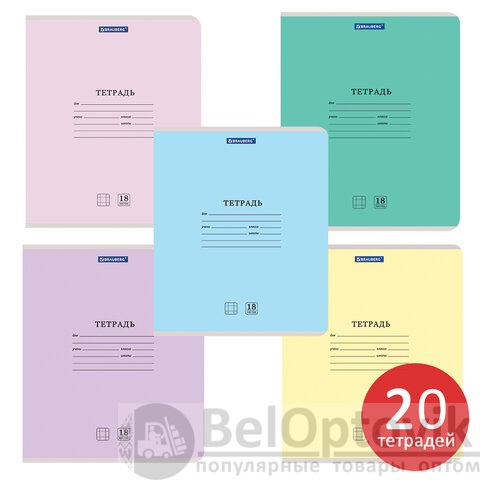 Тетради ДЭК 18 л. КОМПЛЕКТ 20 шт. BRAUBERG "КЛАССИКА NEW", клетка, обложка картон, АССОРТИ (5 видов), 880058