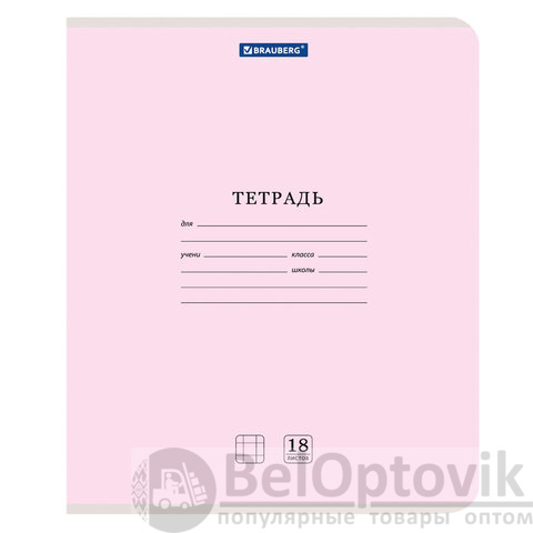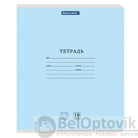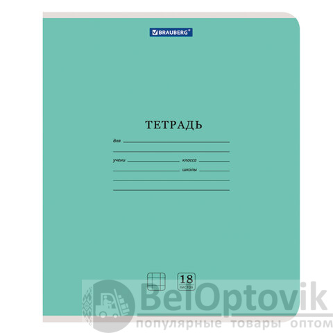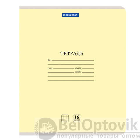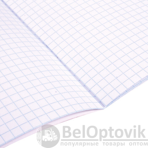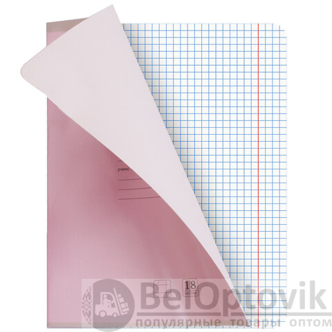 Внутренний блок плотностью 65 г/м2 из офсетной бумаги имеет линовку в клетку с полями. Содержит 18 листов. Обложка изготовлена из импортного мелованного картона. Скрепка надежно скрепляет листы между собой. Справочная информация на оборотной (задней) стороне обложки содержит меры длины, объема, массы, площади и таблицу умножения. Поставляется в нескольких вариантах цвета без возможности выбора. Тетради поставляются комплектом в количестве 20 штук.