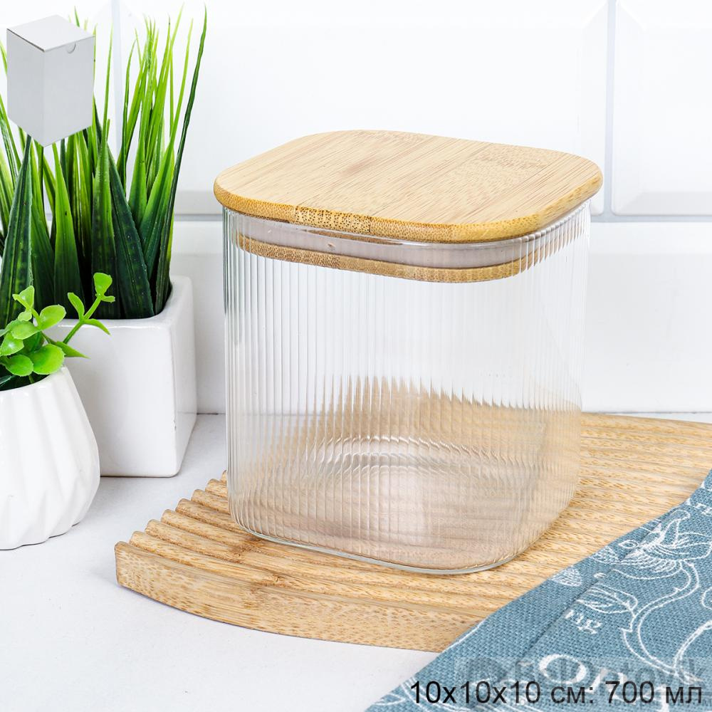 Банка квадратная для сыпучих бамбуковая крышка d-100/100 мм Вертикаль / 6663 /уп 100/