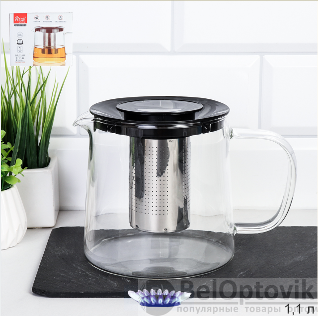Чайник 1150 мл жаропрочное стекло / С01-1150 /уп 36/* с нейлоновой крышкой