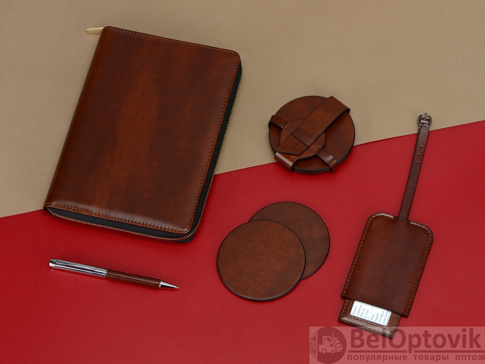 Набор состоит из четырех подставок и ремня-чехла, с помощью которого костеры очень удобно хранить в одном месте. Подставки круглой формы идеально подойдут для бокалов разного диаметра. Универсальная форма, легко моющийся материал, персонализация на самих костерах, а также ремешке.
