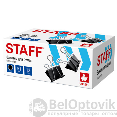 Зажимы для бумаг БОЛЬШИЕ STAFF ECO, КОМПЛЕКТ 12 шт., 51 мм, на 230 листов, черные, картонная коробка, 274035