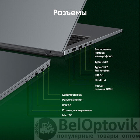 Многообразие портов: Ноутбуки FORTIS M оснащены всеми необходимыми разъемами для подключения периферийных устройств: USB 2.0, USB 3.0, USB-C, HDMI, RJ-45 (1 Gbit), а также слотом для карт памяти microSD и аудиоразъемом 3,5 мм.