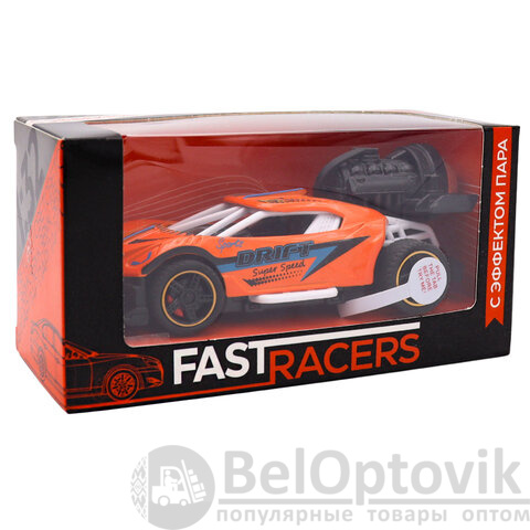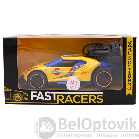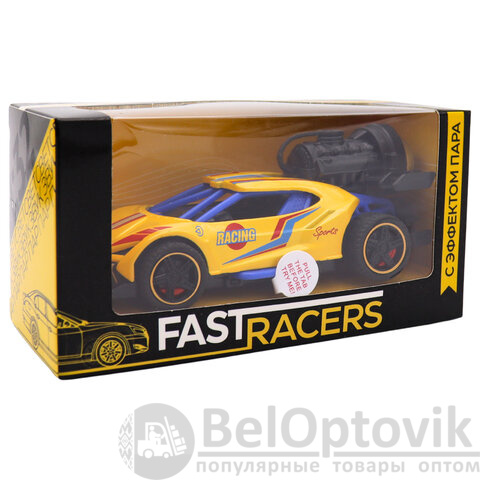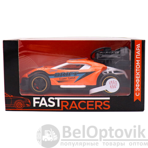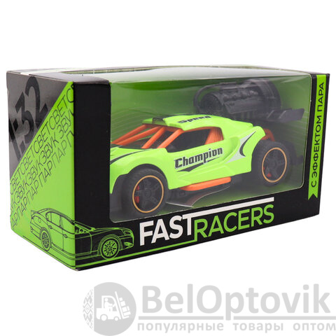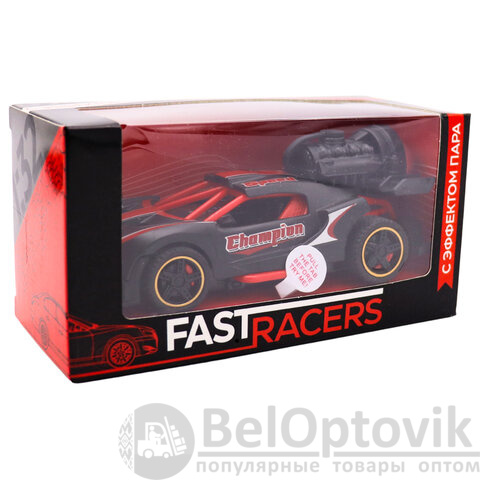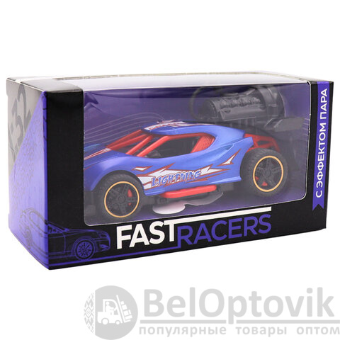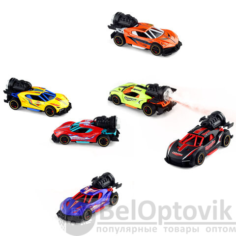 Стильная машинка в масштабе 1:32 не только привлекает внимание своим ярким дизайном, но и добавляет реалистичности благодаря функции выпуска пара, как у настоящего спорткара на старте.
