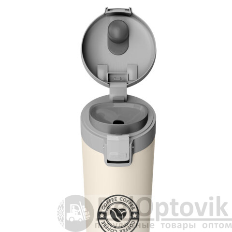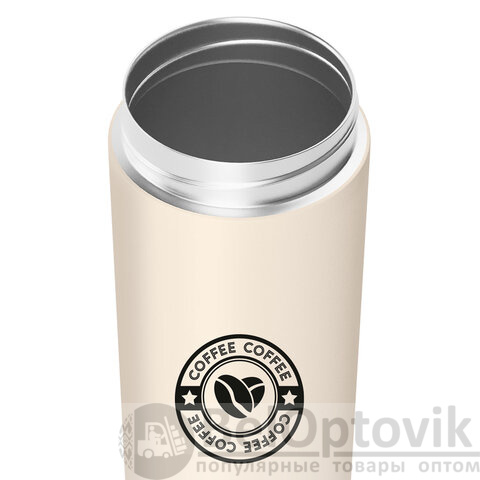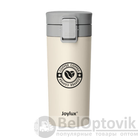 Термокружка 380 мл JOYLUX (ДЖОЙЛЮКС) CLASSIC COFFEE, нержавеющая сталь SUS304, бежевый с принтом, 700273