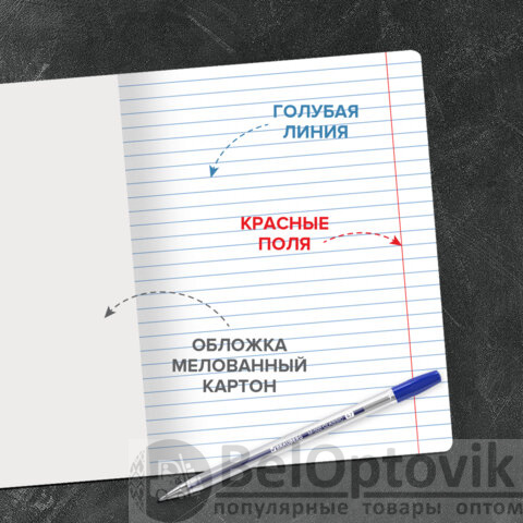 Внутренний блок из офсетной бумаги плотностью 60 г/м2 содержит 12 листов в линию с полями. Обложка изготовлена из импортного мелованного картона, что позволит сохранить тетрадь в аккуратном состоянии на протяжении всего времени использования. Скрепка надежно соединяет листы между собой.