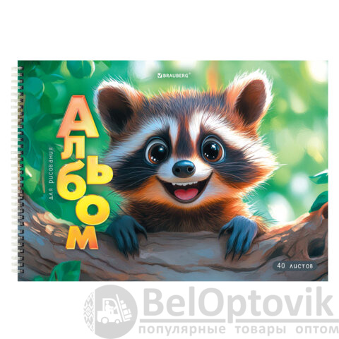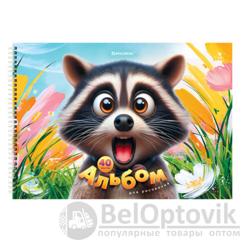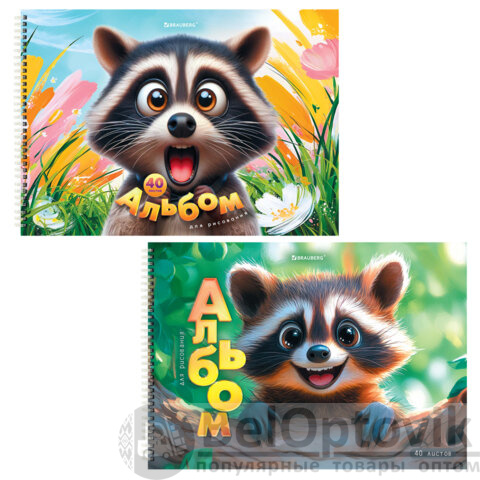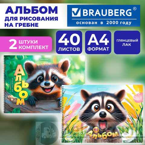 Альбомы для рисования ДЭК, А4, 40 л., КОМПЛЕКТ 2 шт., гребень, глянцевый лак, BRAUBERG, 200х290 мм, "Енотик", 107738