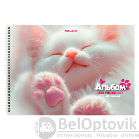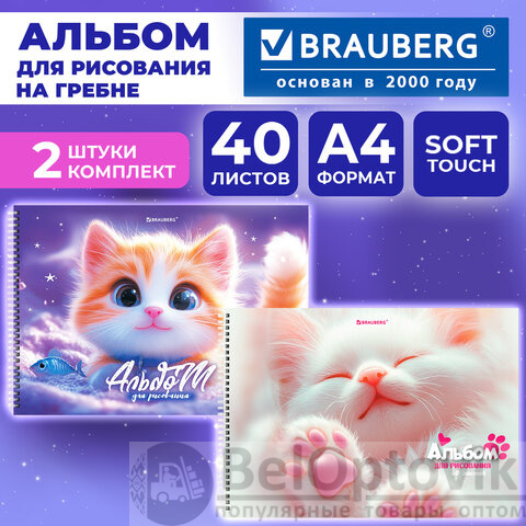 Альбомы для рисования ДЭК, А4, 40 л., КОМПЛЕКТ 2 шт., гребень, Soft-touch, BRAUBERG, 200х290 мм, "Лапки", 107747