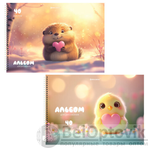 Комплект включает 2 альбома в разных вариантах дизайна "Сердечки". Каждый альбом содержит 40 листов плотностью 100 г/м2 формата А4 (200х290 мм). Красочная обложка выполнена из мелованного картона с выборочным лаком. Скрепление листов осуществляется с помощью гребня. Подходит для смешанных техник рисования красками, карандашами и фломастерами.