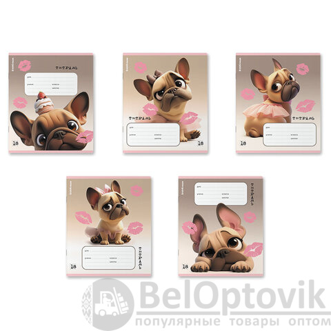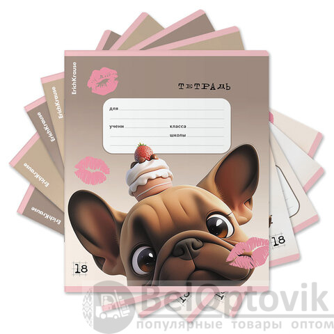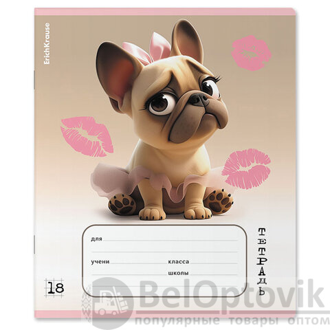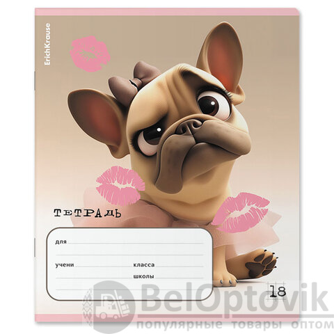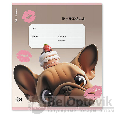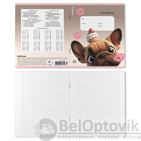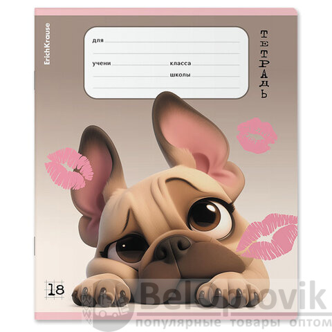 Тетрадь 18л. ErichKrause клетка, выборочный УФ-лак, Frenchie (микс в спайке),64834
