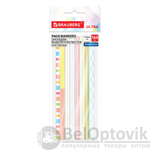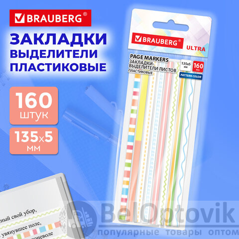 Закладки клейкие, выделители текста, BRAUBERG ULTRA PATTERN COLOR, 135х5 мм, 160 штук (8 цветов х 20 листов), 116687
