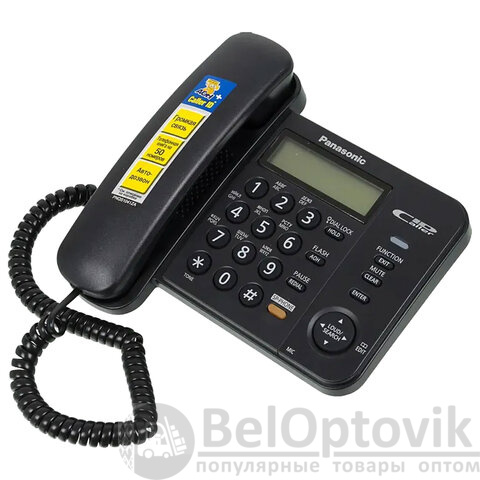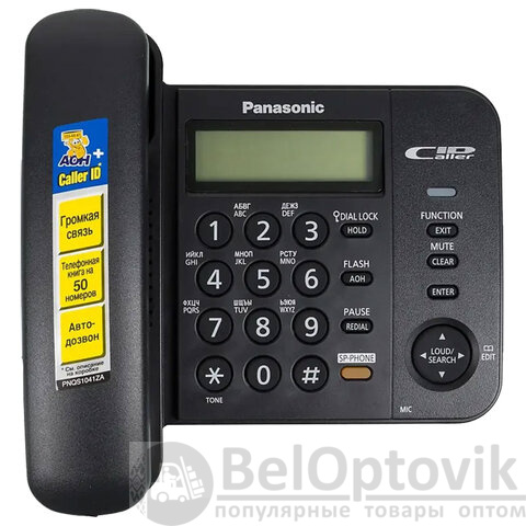 Телефон PANASONIC KX-TS2358RUB, черный, память 50 номеров, АОН, спикерфон, ЖК дисплей с часами, тональный / импульсный режим