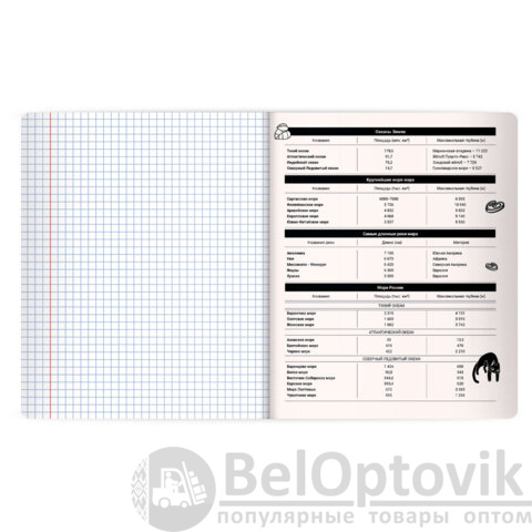 Тетрадь по географии формата А5 с двойной обложкой: внешняя выполнена из высококачественного износостойкого прозрачного пластика, внутренняя – из качественной офсетной бумаги. Преимущество таких тетрадей заключается в том, что для сохранения внешнего вида не нужно покупать дополнительную обложку. На подкладных листах содержится справочный материал по предмету. Внутренний блок плотностью 60 г/м2 из офсетной бумаги содержит 48 листов в клетку с полями. Белизна блока - 100%. Скрепка надежно соединяет листы между собой.