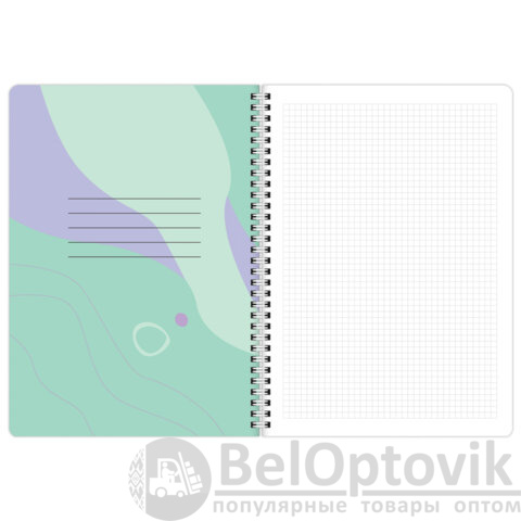 Внутренний блок содержит 96 листов офсетной бумаги плотностью 80 г/м2. Обложка изготовлена из мелованного картона с с ламинацией SoftTouch. Линовка - клетка. Гребень надежно скрепляет листы между собой. Белизна - 100%. Формат А4. 9 самоклеющихся стикеров 70г/м2 с матовой ламинацией расположены на бумаге 160 г/м2 размером 10х15 см.