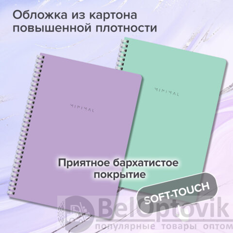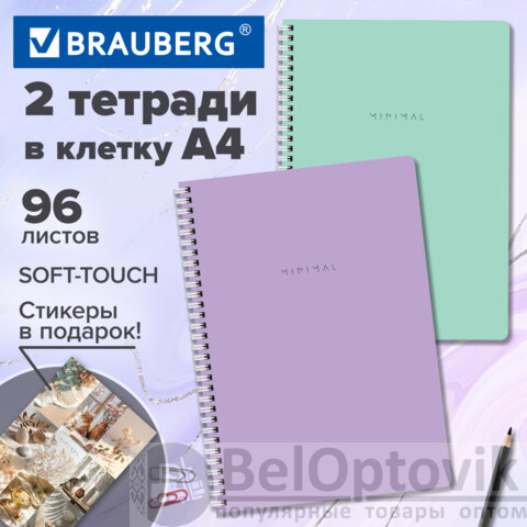 Тетради ДЭК А4 96 л. КОМПЛЕКТ 2 шт., BRAUBERG, гребень, клетка, 80 г/м2, SoftTouch, "Minimal", 405585