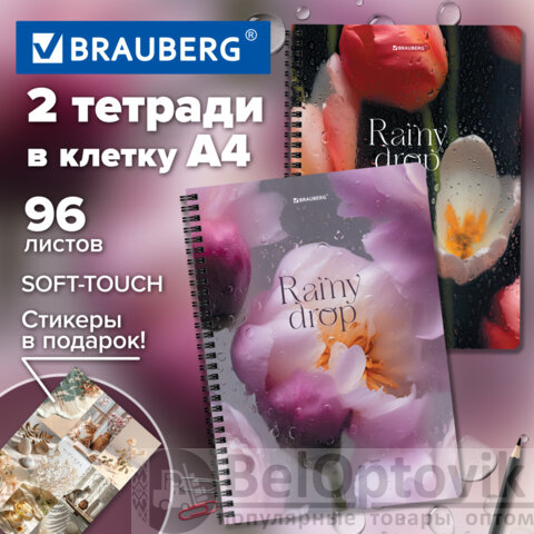 Тетради ДЭК А4 96 л. КОМПЛЕКТ 2 шт., BRAUBERG, гребень, клетка, 80 г/м2, SoftTouch, "Aesthetics", 405586