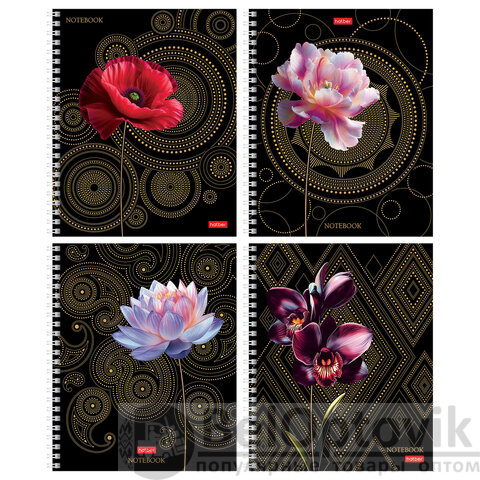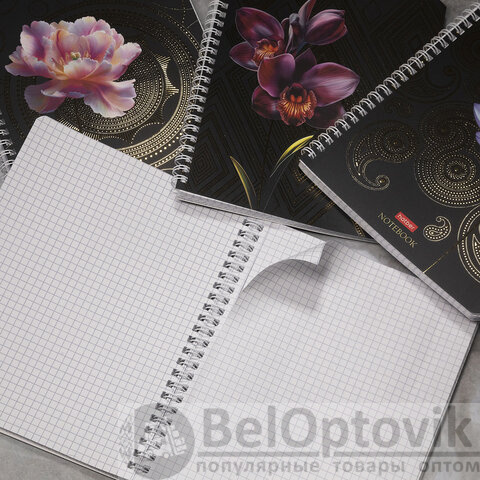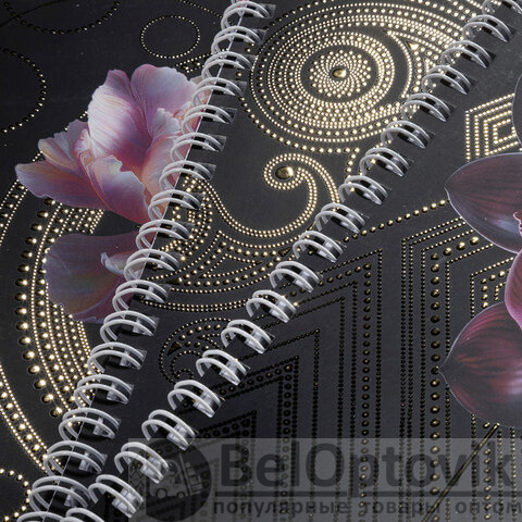 Тетрадь А5 формата 96 листов. Обложка- мелованный картон. Дополнена спецэффектами в виде матовой ламинации, 3D фольги и 3D лака. Внутренний блок- офсет 65 гр., клетка. Скрепление- гребень. 4 дизайна в блоке. Скрепление 'гребень' позволяет раскрывать тетрадь на 360 градусов.
