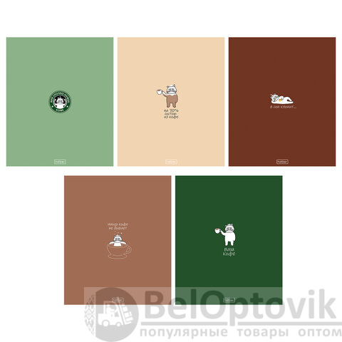 Тетрадь А5 96л. HATBER скоба, клетка, Soft-touch ламинация, Coffee Story (микс в спай, 96Т5лВ1