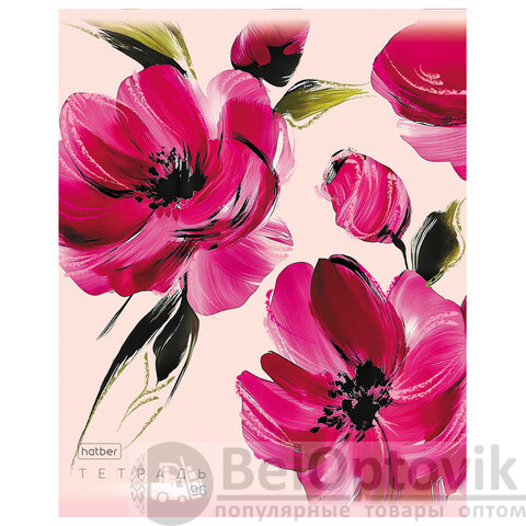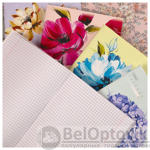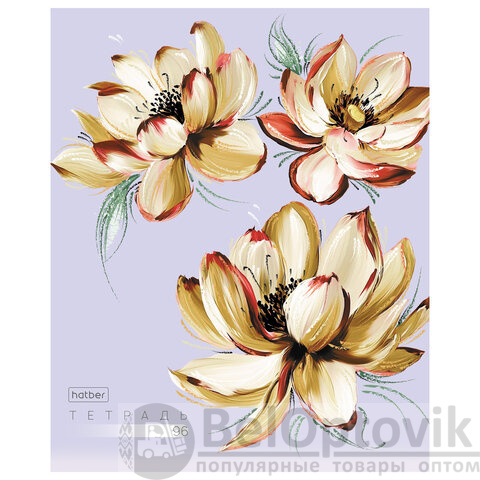 Тетрадь А5 96л. HATBER скоба, клетка, тиснение, Красочные лепестки (микс в спайке), 0, 96Т5тВ1