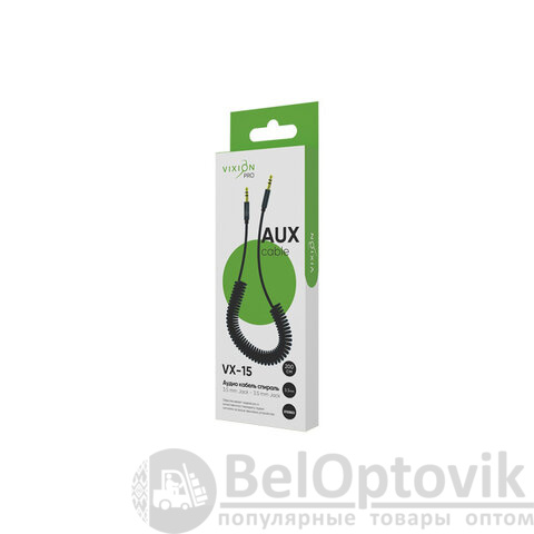 Переходник AUX, Jack 3,5 (M) - Jack 3,5 (M), 2 м, VIXION PRO VX-15, спираль, черный, 02755, БП-00000935