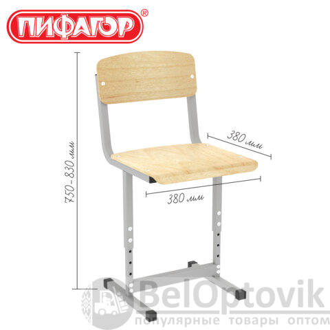 Стул ученический регулируемый ПИФАГОР SC-3, 380х380х750-830 мм, рост 5-7 (4-6) (160-190 см), серый каркас, фанера, 533350