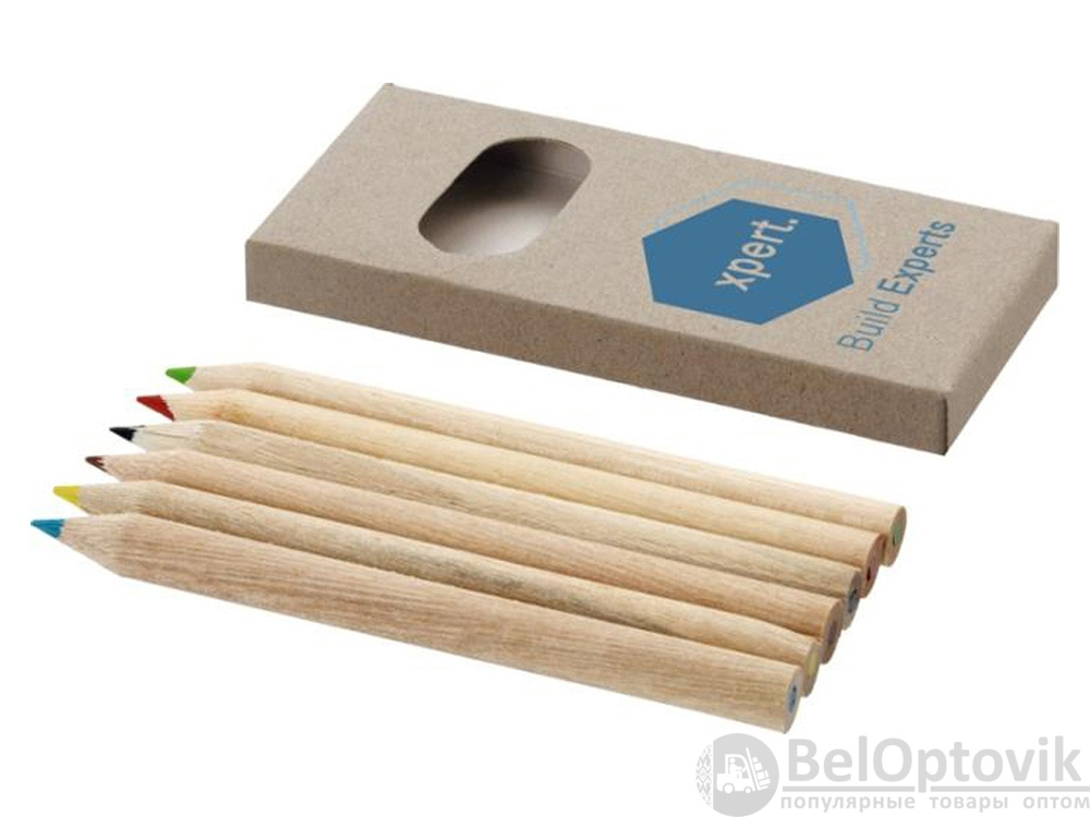 Набор включает в себя 6 цветных карандашей из натурального дерева. На картонную коробку и карандаши можно нанести логотип организации.