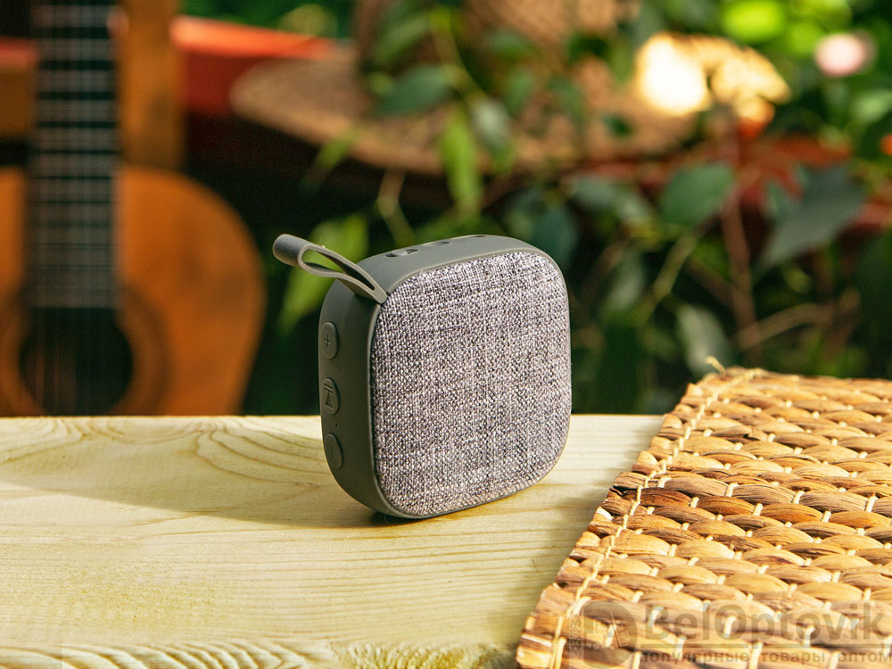 Симпатичная компактная беспроводная колонка с достойным звуком при размере всего в 7 х 7 см. Приятная на ощупь за счет корпуса с покрытием soft-touch и акустической ткани. Время воспроизведения до 3 часов благодаря встроенному аккумулятору в 300 mAh и энергосберегающему протоколу Bluetooth версии 4.2. Удобная и прочная петелька не даст колонке случайно выпасть. Встроенный микрофон для hands-free звонков.