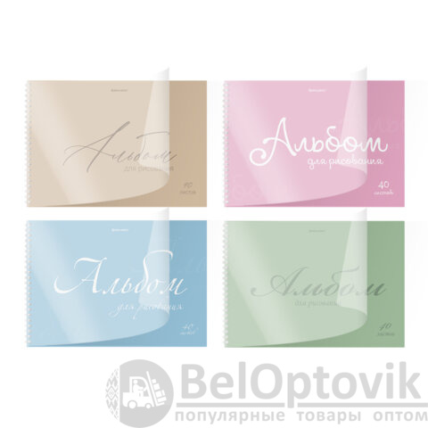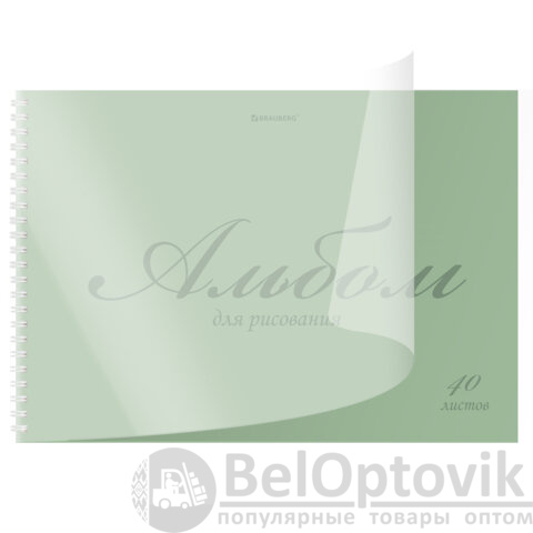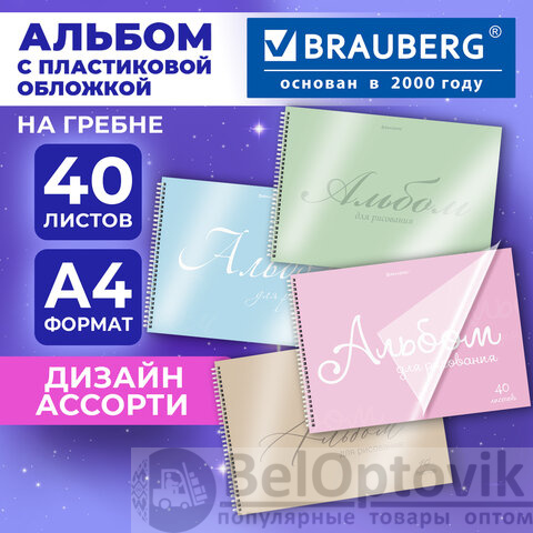 Альбом для рисования, пластиковая обложка, А4, 40 л., гребень, BRAUBERG, 210х297 мм, ОДНОТОННЫЕ (4 вида), 107681
