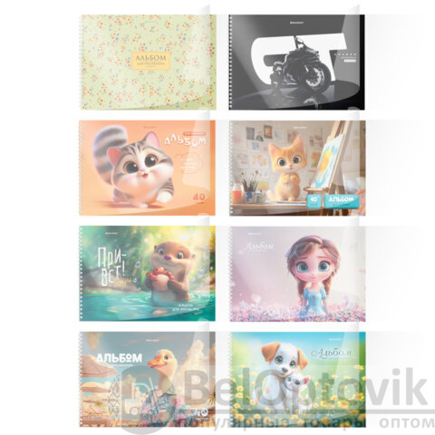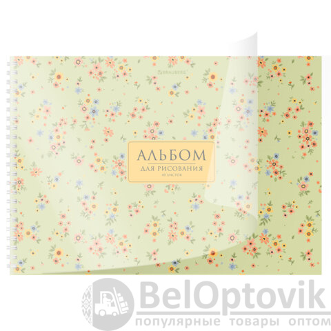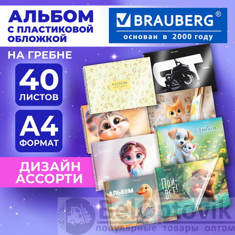 Альбом для рисования, пластиковая обложка, А4, 40 л., гребень, BRAUBERG, 210х297 мм, АССОРТИ-2 (8 видов), 107683